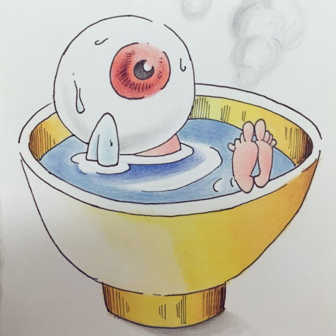 とっしー先輩 こー出来ればと一度は思うよね 今日の絵日記 落書き イラスト Illustration Graffiti Medibang メディバンペイント 目玉おやじ 妖怪 花粉症 シャワー 目が痒い 憧れ スッキリ 洗いたい 目玉 眼球 Specter Apparition